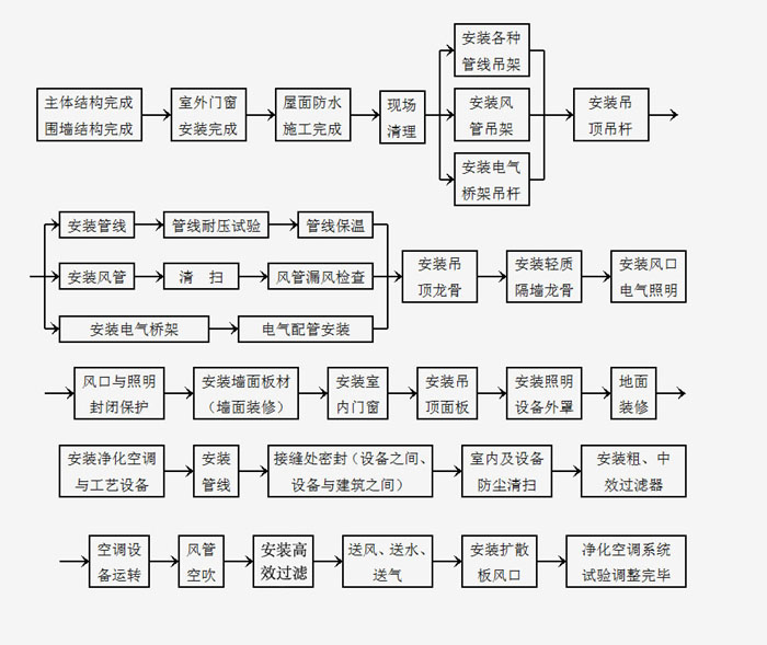 3、凈化工程設(shè)計(jì)應(yīng)為施工安裝、維護(hù)管理、測(cè)試和安全運(yùn)行創(chuàng)造必要的條件。