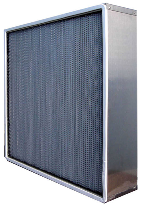 耐高濕高效過(guò)濾器以叫鋁隔板高效過(guò)濾器,耐高濕有隔板高效過(guò)濾器采用隔板式設(shè)計(jì),波紋形隔板可以精確地保持褶層間距、在最小阻力下,最大限度地利用濾料。鋁隔板高效過(guò)濾器濾材兩面180褶翻折形成鍥形褶層,濾料折彎時(shí)有兩道壓痕,使鋁隔板高效過(guò)濾器濾料在隔板的尾端開成鍥形盒式褶層,鍥形盒式褶層可以防止濾料破損。在腐蝕性環(huán)境中,可使用鍍乙烯隔板,捕捉0.3um粒子效率99.99%。
