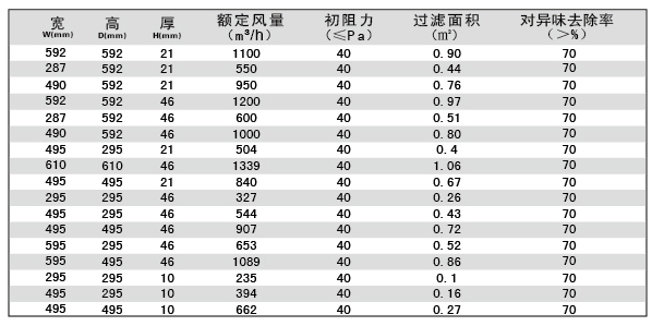 用戶選購(gòu)指南-板式初效活性炭過(guò)濾器技術(shù)參數(shù)