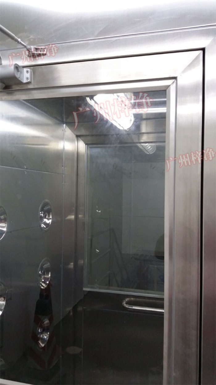 工作原理:用于人員出入,防止不潔凈氣流進入潔凈區,工作區內設置吹淋凈化處理裝置,消除人、物表面附著塵埃,同時具有氣閘作用,配合潔凈空調系統確保潔凈室達到所需潔凈度。
