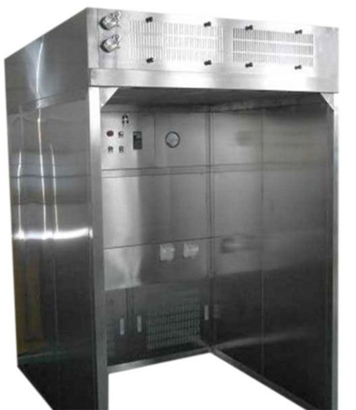 稱量罩采用304不銹鋼,工作區域墻板選用不銹鋼304(1.2mm厚,油拉絲短絲,墻板內部圓弧角連接,無死角,保證工作區域的密封性和整潔美觀。采用模塊式設計,現場組裝拆卸方便。負壓稱量罩由初效過濾器+中效過濾器+風機箱高效過濾器+均流膜組成。稱量罩負壓采樣室由機箱、送風高效過濾器、排氣高效過濾器、可變風量風機組、PLC控制系統和傳感系統等幾大部件組成。稱量罩機箱采用拉絲無指紋不銹鋼SUS304制作,鈑金一體折彎制作而成,美觀潔凈,易于清潔消毒。稱量罩(中心稱量室、稱重室)采用了可調風量的風機系統和不銹鋼風速傳感器,通過調節風機的工作工況,可使潔凈工作區中的平均風速保持在設定0.45m/s的范圍內。