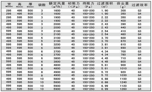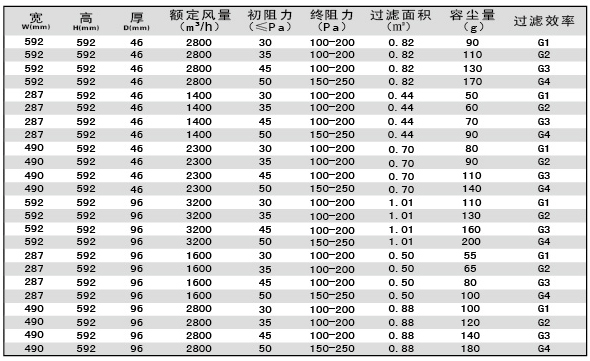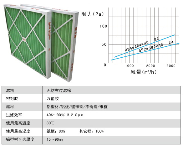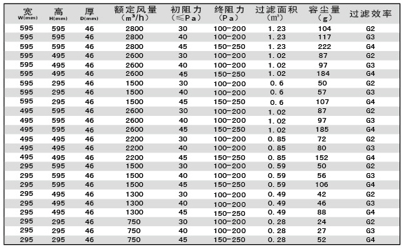 板式初效過濾器技術參數