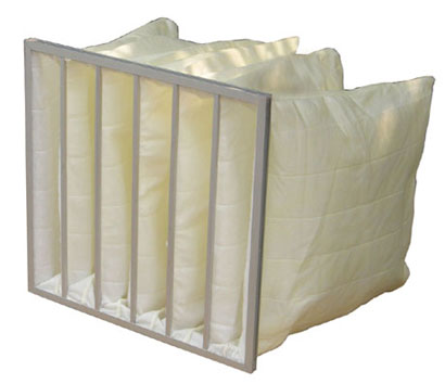 過濾材料是以折疊形式裝入高強度摸且硬紙板內,迎風面積增大,流入的空氣中的塵埃粒子被過濾材料有效阻擋在摺與摺之間。潔凈空氣從另一面均勻流出。因此氣流通過過濾網是平穩和均勻的。視過濾濾料不同。它所攔截粒子的粒經從0.5um到5um而不同。過濾效率也不同。
