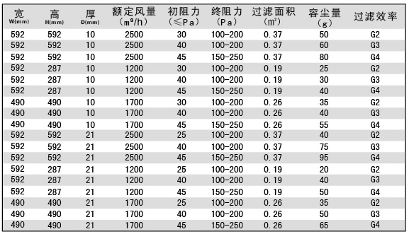 過濾效率:G1、G2、G3、G4