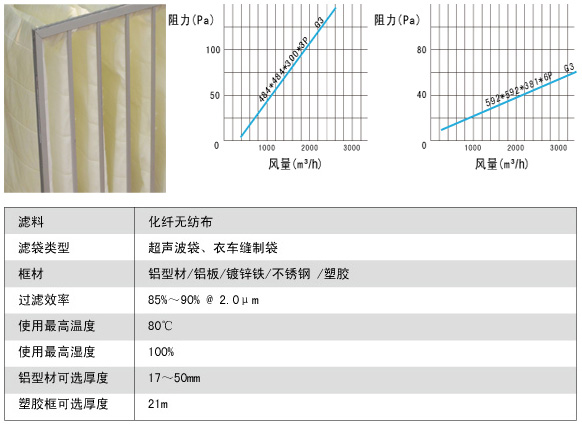 化纖袋式初效過濾器材質說明: